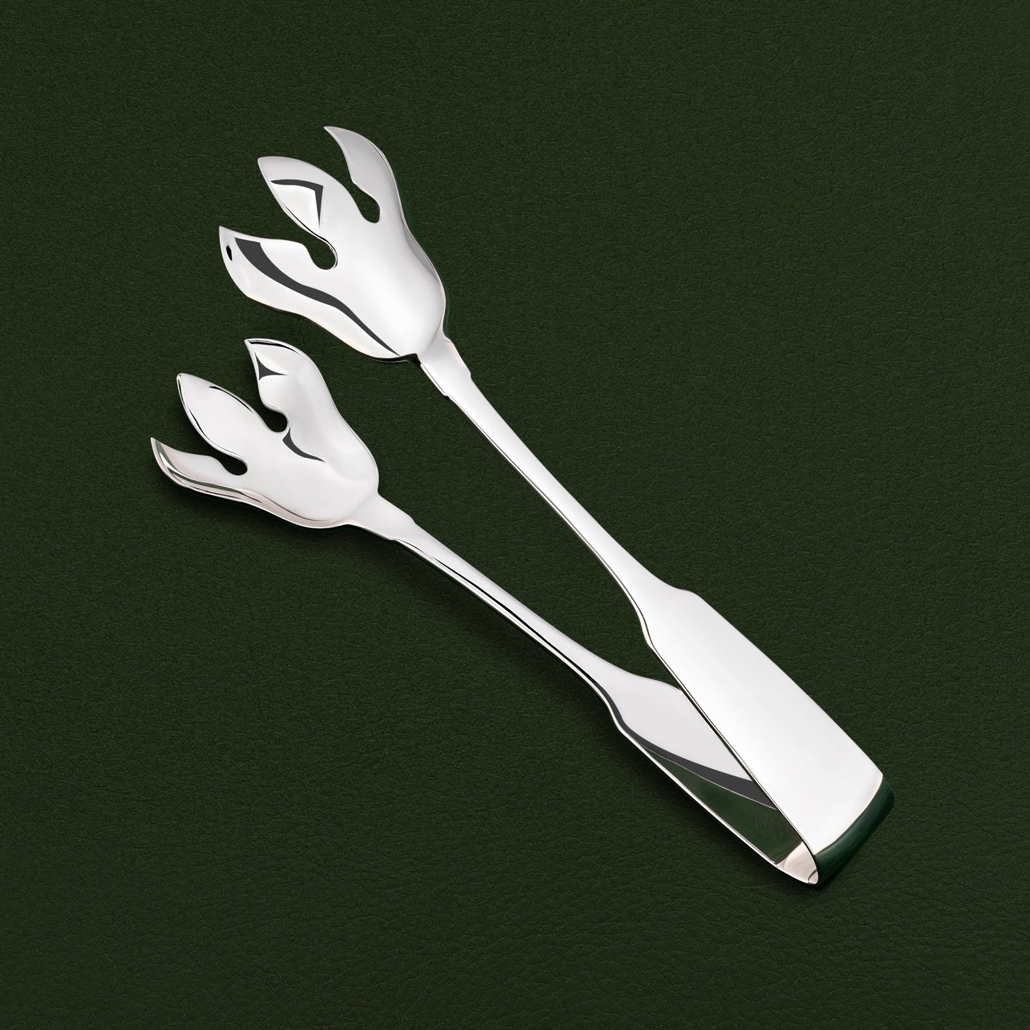 Elegant sterling silver tongs, perfect for serving ice with style.